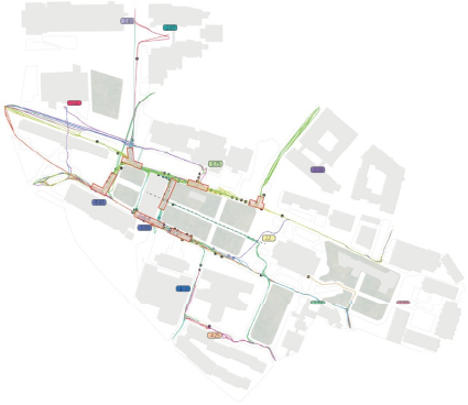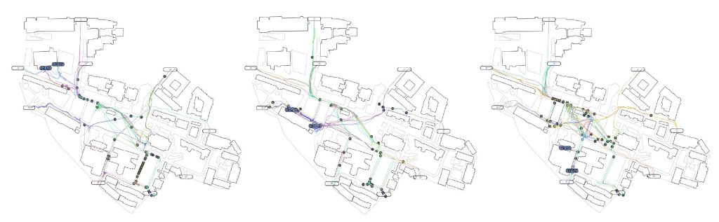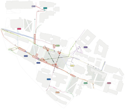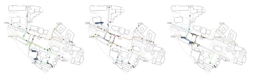 The study began with a comprehensive analysis of street vitality using OpenStreetMap (OSM) data. This phase focused on extracting and interpreting spatial data related to the campus streets, identifying patterns of use and areas of high pedestrian traffic. By establishing temporal checkpoints and analyzing the flow of movement across different times of day, the research aimed to capture a snapshot of the university’s dynamic pulse. The vitality data gleaned from this analysis provided a solid foundation for understanding how the campus’s physical layout affects pedestrian behavior and the wear patterns on green spaces.