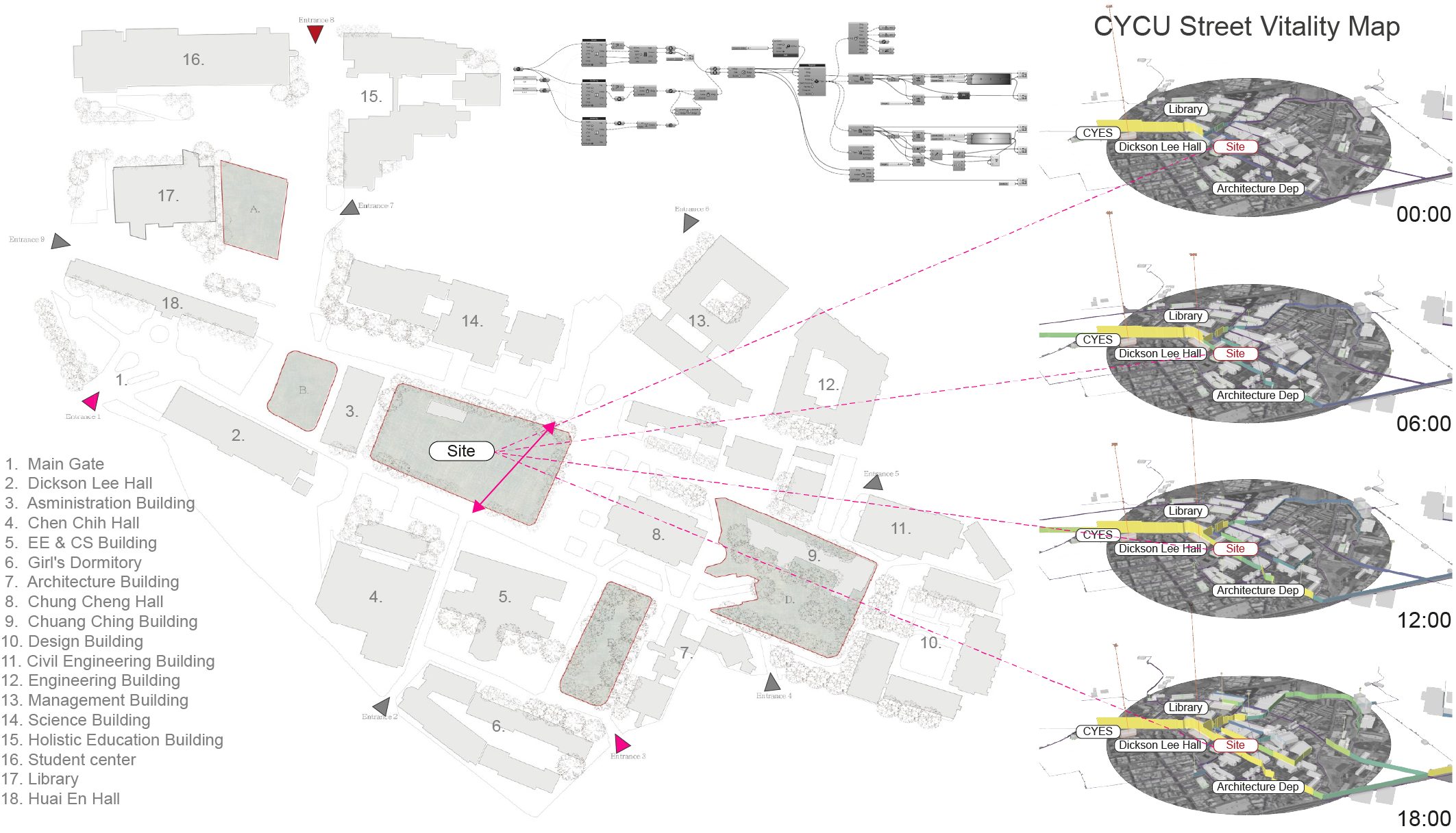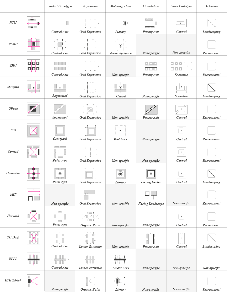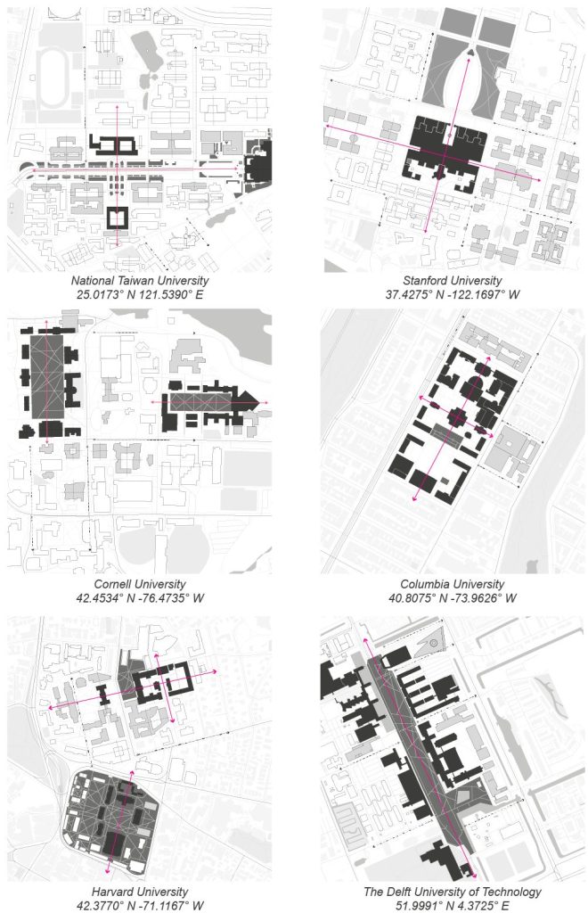 With a firm grasp of the campus’s spatial dynamics, the second phase shifted attention to a typological analysis. This stage involved a comparative study of lawn segmentation strategies by examining a variety of universities both within Taiwan and worldwide. The goal was to understand the range of existing approaches to managing pedestrian traffic through landscape design. This exploration of different segmentation methods informed the potential for implementing similar or novel strategies in the context of Chung Yuan Christian University.