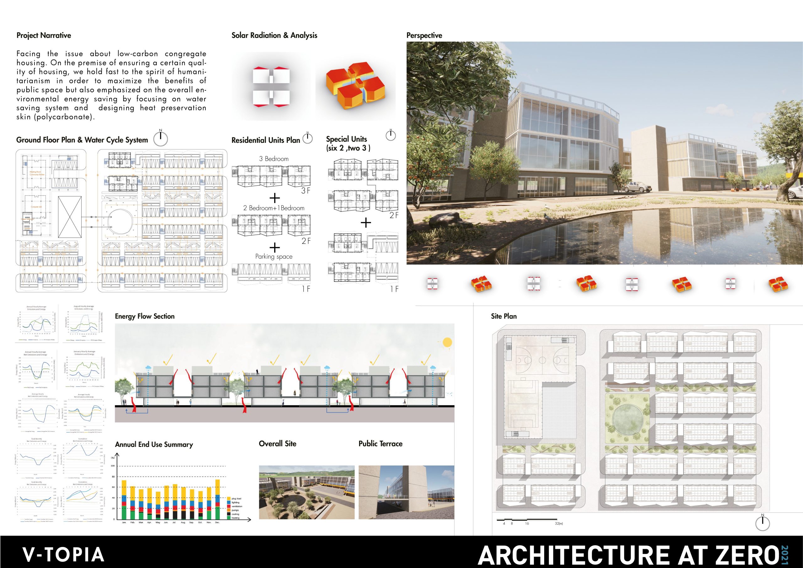 Facing the issue about low-carbon congregate housing. On the premise of ensuring a certain quality of housing, we hold fast to the spirit of humanitarianism to maximize the benefits of public space and the overall environment of the community. The most important thing is all about the energy saving of the base and sustainable way for the thinking. To discuss how to put in place the contemporary low-carbon economic housing. We take the 6 standard of LEED indicators as the basic goal of this design.